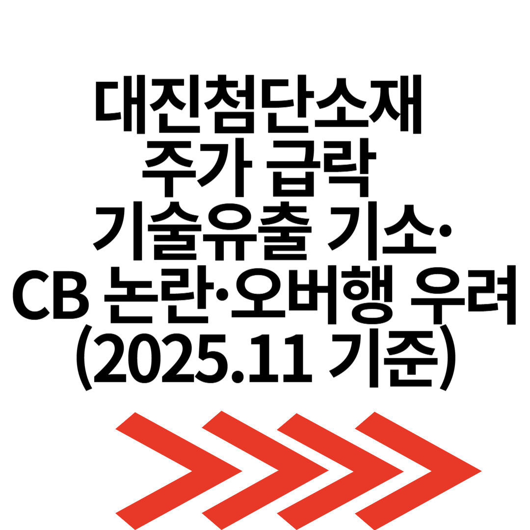 📉 대진첨단소재 주가 급락 │ 기술유출 기소·CB 논란·오버행 우려까지 총정리 (2025.11 기준)